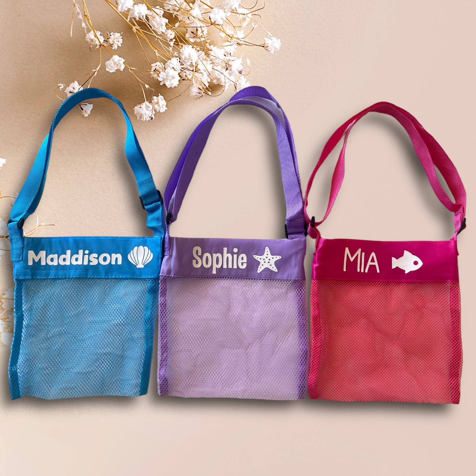 Shell collecting bag with adjustable straps.